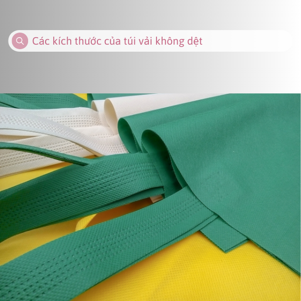 Túi vải không dệt là một sản phẩm thân thiện với môi trường, được sử dụng rộng rãi trong đời sống hàng ngày. Với đặc tính bền, nhẹ, dễ tái sử dụng và phân hủy sinh học, túi vải không dệt đã trở thành lựa chọn tối ưu thay thế túi nilon truyền thống. Một yếu tố quan trọng khi sử dụng túi vải không dệt là kích thước, vì nó ảnh hưởng trực tiếp đến tính tiện dụng và mục đích sử dụng của túi.