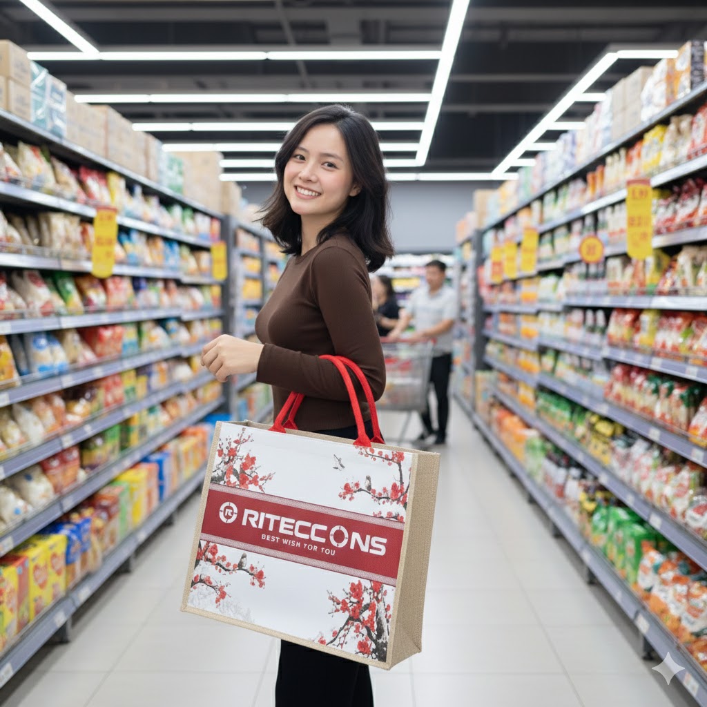Khách hàng sử dụng túi vải quà tặng RITECCONS