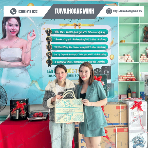 Feedback gần đây nhất từ một khách hàng ngành mỹ phẩm: “Túi vải đặt lần này quá ưng ý! Vải dày, in rõ, đường may cực kỳ chắc chắn, khách của mình còn khen túi xinh hơn cả sản phẩm bên trong nữa. Giao hàng cũng đúng hẹn dù mình đặt số lượng lớn.” – Đây không phải là lần đầu tiên team Hoàng Minh nhận được những phản hồi như vậy. Rất nhiều khách hàng từ các ngành hàng khác nhau như F&B, thời trang, giáo dục, spa, showroom trưng bày… đều đồng loạt ghi nhận chất lượng túi vượt mong đợi, giá thành hợp lý, dịch vụ hỗ trợ tận tâm và quy trình làm việc chuyên nghiệp.