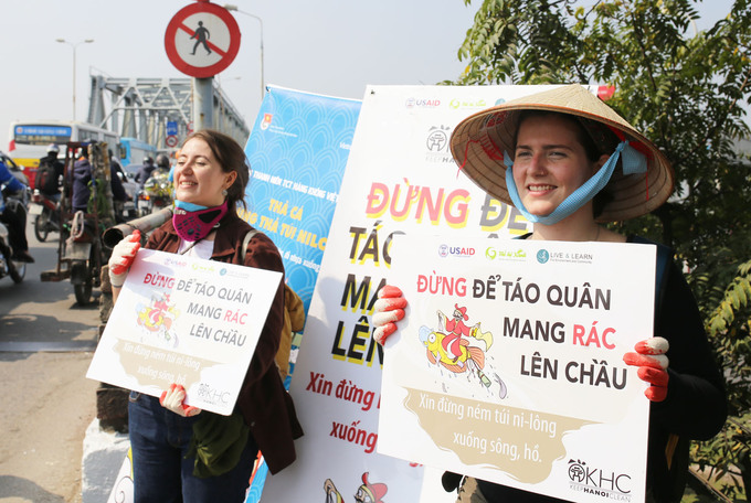 Người nước ngoài kêu gọi không thả túi nylon xuống sông Hồng