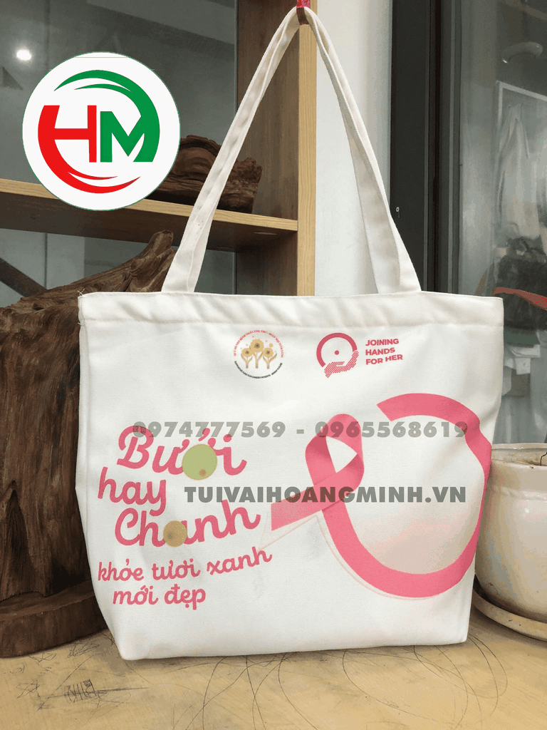 - Túi vải đang là món quà mà các doanh nghiệp chọn để tặng khách hàng vì tính thiết thực cao trong cuộc sống hàng này. Sản phẩm được in logo thương hiệu riêng của BƯỞI CHANH , Chiếc túi có thể sử dụng lại nhiều lần, giúp lan tỏa thương hiệu khơi gợi cho khách hàng về sự hiện diện của thương hiệu, là cách truyền thông maketing rất hiệu quả. - Túi vải canvas thuộc tính thân thiện môi trường. Chi phí thấp cũng là ưu điểm để có thể lựa chọn trong bộ sản phẩm gửi tặng khách hàng của doanh nghiệp.