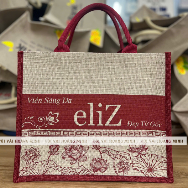 Túi vải EliZ được làm từ vải đay linen hay còn gọi là vải lanh, được dệt từ sợi cây lanh (Flax). Với kích thước 30*29*15cm, màu in là đỏ và màu vải là kem, bên hông và quai túi cũng màu đỏ. Đường may chắc chắn, thẳng và đẹp. In hình rõ nét, màu in không bị nhòe.