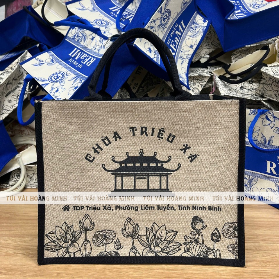Túi vải quà tặng in logo chùa Triệu Xá - Xưởng Túi Vải Hoàng Minh