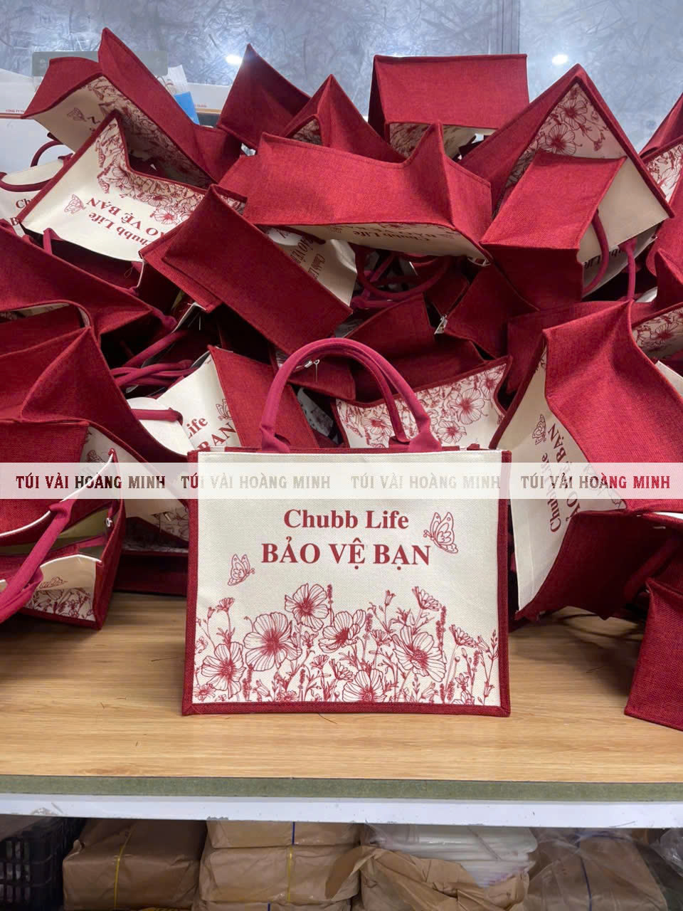 Sản phẩm túi vải linen Chubb Life được sản xuất trực tiếp bởi Túi Vải Hoàng Minh – xưởng may uy tín chuyên cung cấp túi vải bố, túi không dệt, túi linen theo yêu cầu.