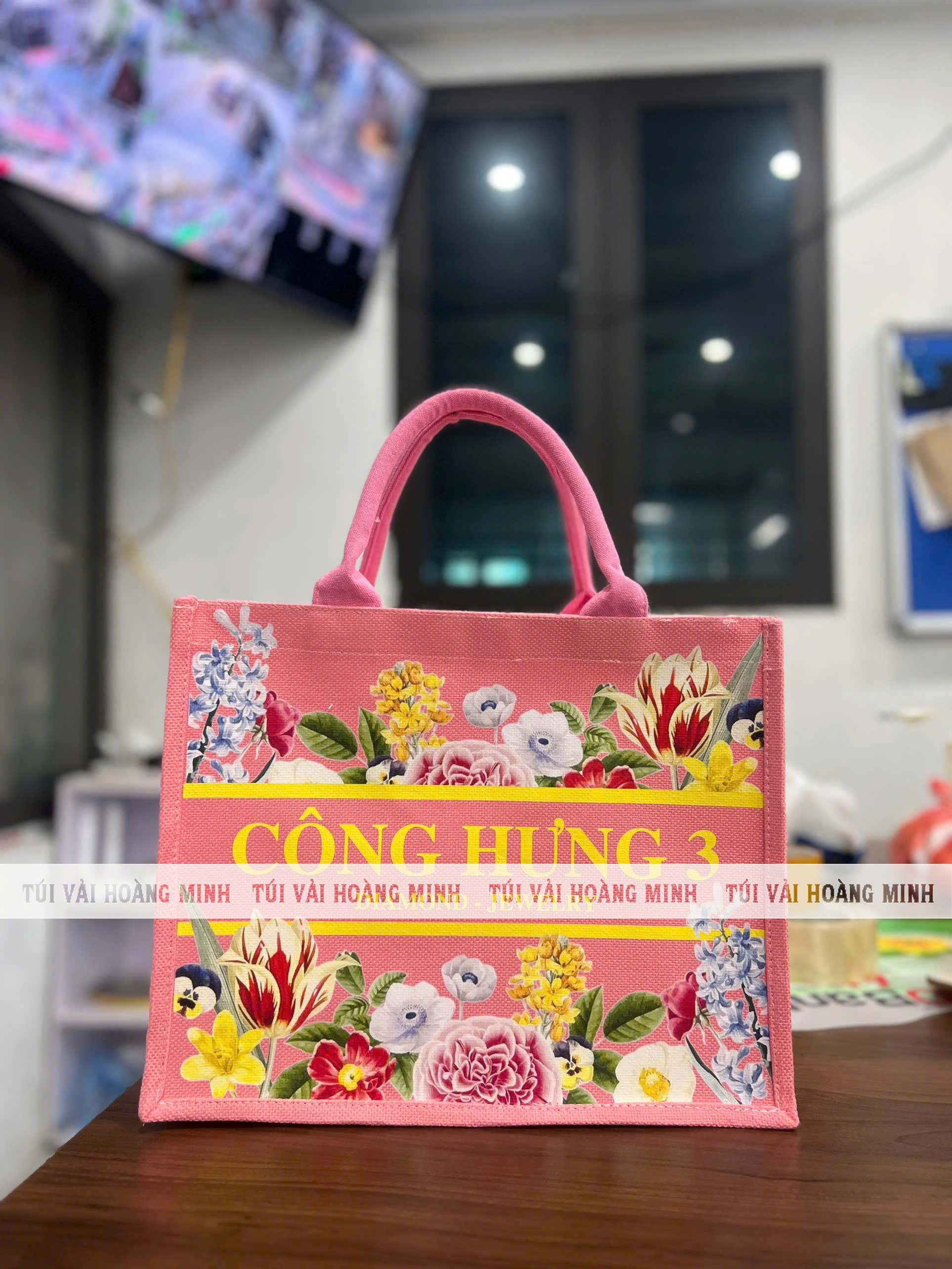Túi vải linen Công Hưng 3 là sản phẩm túi xách cao cấp được thiết kế dành cho những ai yêu thích phong cách nổi bật, tươi trẻ và thân thiện với môi trường. Với gam màu hồng chủ đạo kết hợp họa tiết hoa rực rỡ, chiếc túi vừa mang tính thẩm mỹ cao vừa đảm bảo tính ứng dụng trong cuộc sống hàng ngày.