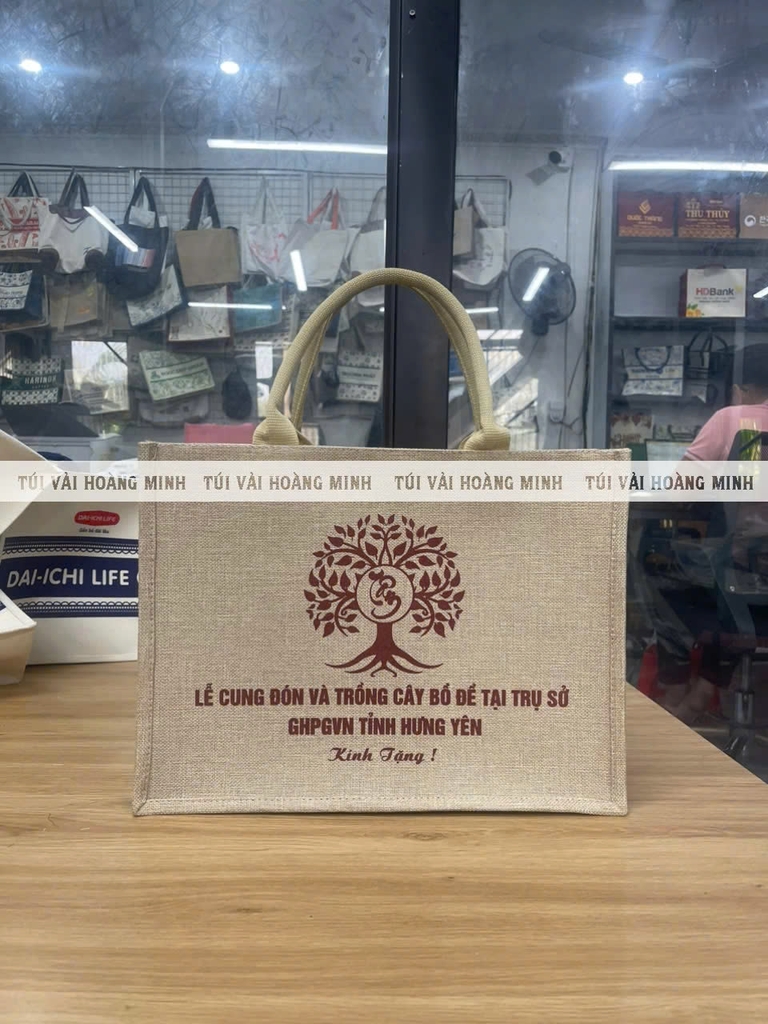 Trong sự kiện “Lễ cung đón và trồng cây Bồ Đề tại trụ sở GHPGVN tỉnh Hưng Yên”, ban tổ chức đã lựa chọn túi vải linen đay làm quà tặng cho khách tham dự. Không chỉ đơn thuần là vật dụng tiện ích, chiếc túi còn mang giá trị biểu tượng: sự giản dị, bền bỉ và thân thiện với môi trường – giống như tinh thần mà cây Bồ Đề truyền tải. Với thiết kế mộc mạc nhưng trang nhã, in logo sự kiện nổi bật, túi vải linen đay trở thành món quà ý nghĩa, lưu giữ kỷ niệm và thông điệp xanh từ ngày lễ thiêng liêng này.