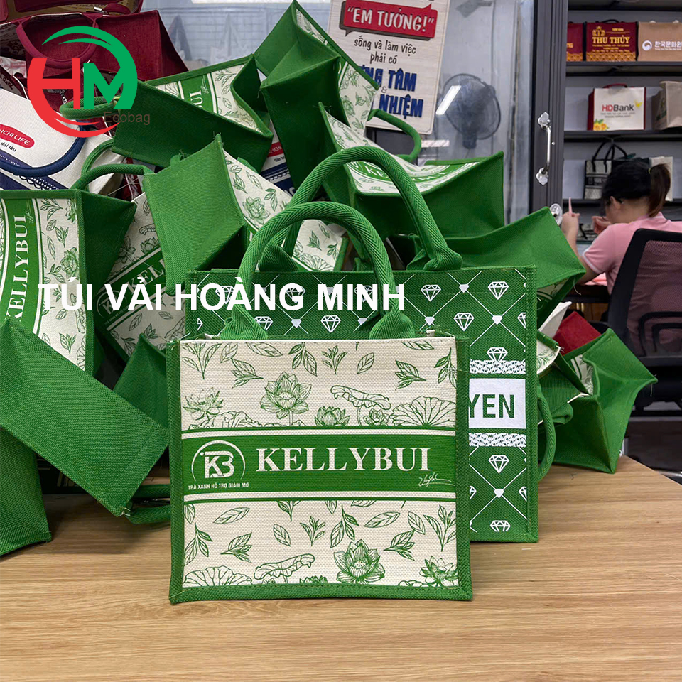 Trong xu hướng “xanh hóa” quà tặng doanh nghiệp hiện nay,túi vải linen là lựa chọn thông minh giúp doanh nghiệp vừa quảng bá thương hiệu vừa thể hiện trách nhiệm với môi trường. Mẫu túi vải in logo “KELLY BUI” dưới đây là ví dụ tiêu biểu cho sự kết hợp giữa tính thẩm mỹ – độ bền – và tính ứng dụng cao trong từng chi tiết thiết kế và khẳng định cho thương hiệu.