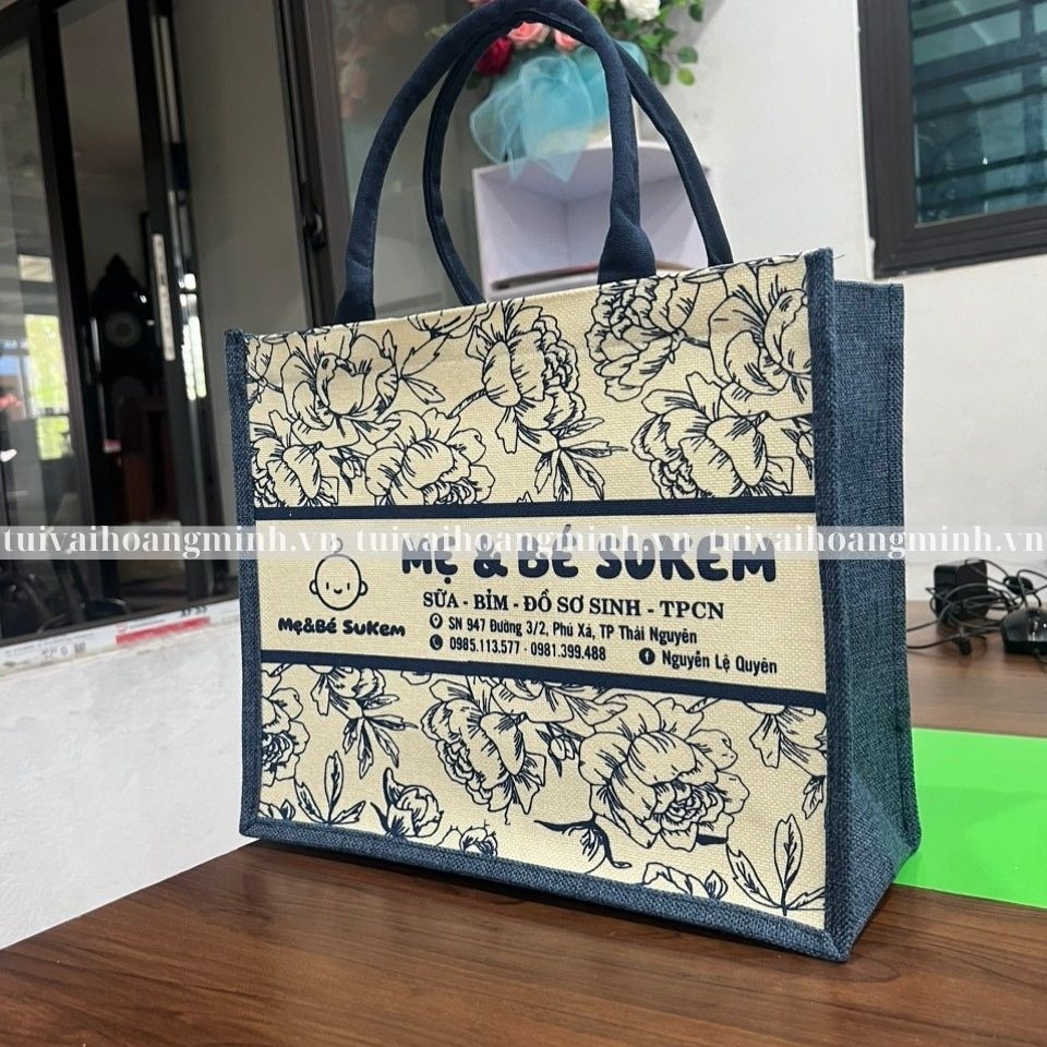 Túi vải linen Mẹ & Bé Sukem được xưởng may Hoàng Minh thiết kế cực kì sang trọng có tính thẩm mỹ cao , thích hợp để tặng người thân, khách hàng, thể hiện được sự trang trọng, lịch sự khi đi kèm với các món quà bên trong. - Kích Thước : 35x29x15